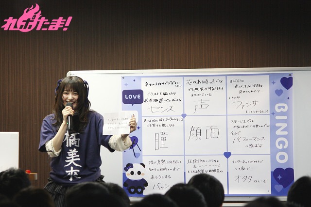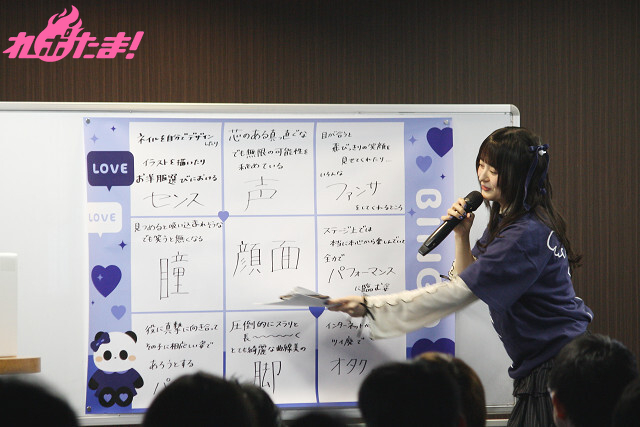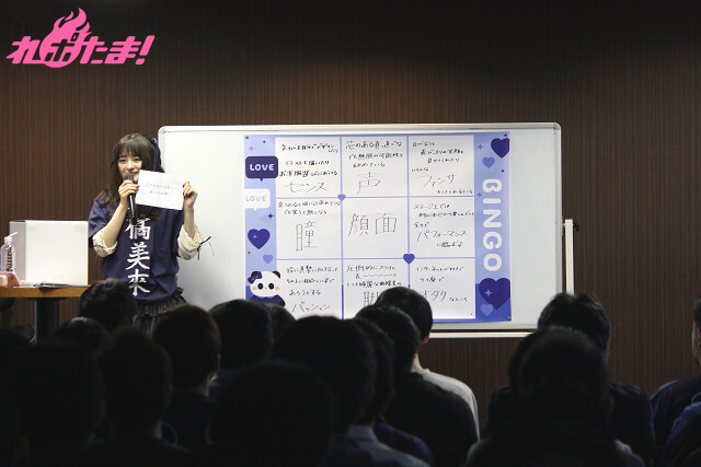 それでもなんとか「オタク」、「センス」、「パフォーマンス」のマス目を埋めることに成功。「“足”じゃダメなのよ」とこだわっていた「脚」の一文字が書かれた回答を引き当てると、客席からはやんやの喝采が。そのままの勢いでビンゴを狙う橘さんに、会場からは「顔面!」コールが送られていたが、結局トリプルリーチ止まりのまま残念ながらゲームは終了……。