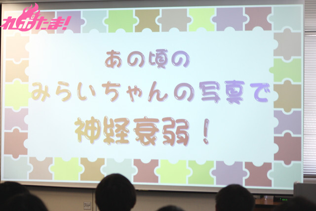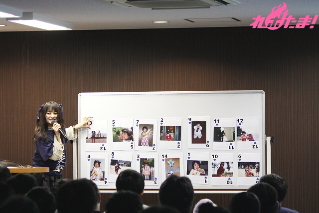 続いては、橘さんの過去の写真で「神経衰弱」を遊んじゃおうという「あの頃のみらいちゃんの写真で神経衰弱」のコーナー。伏せられた全14枚のチャーミングな子供時代の写真から正解を探してていくのだが、いきなり飛び出した赤ちゃんのころの写真に観客は「可愛い!」と歓声が上がっていた。