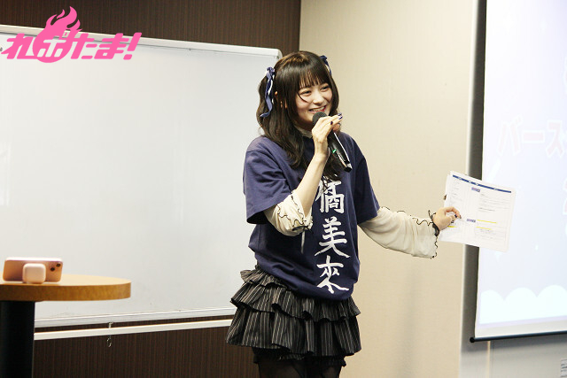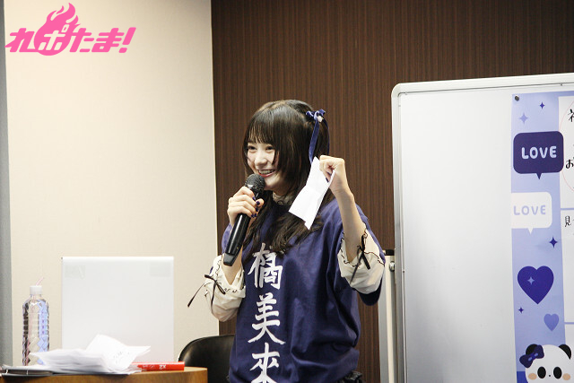 大きな歓声と拍手に包まれながら「橘 未來」と漢字で書かれたバースデー記念グッズの紺Tシャツ姿で登場した橘さん。「みなさんと一緒に過ごせるこの時間、今から楽しみでしょうがない!」と初のソロイベントにワクワクを隠し切れない様子。