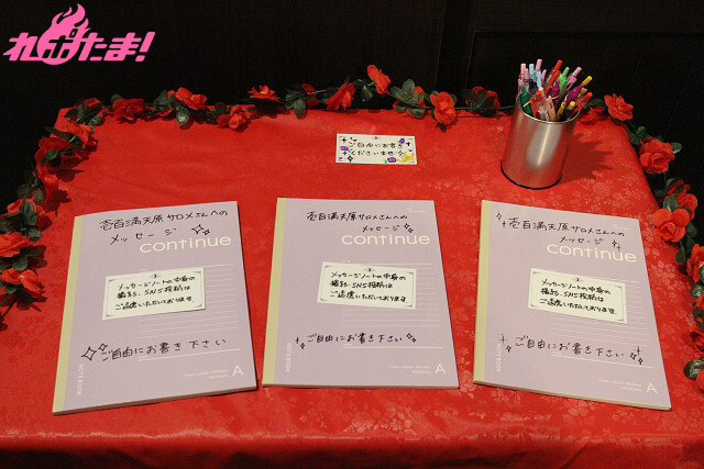 ▲入り口入ってすぐの場所にはサロメさんへのメッセージノートを設置!