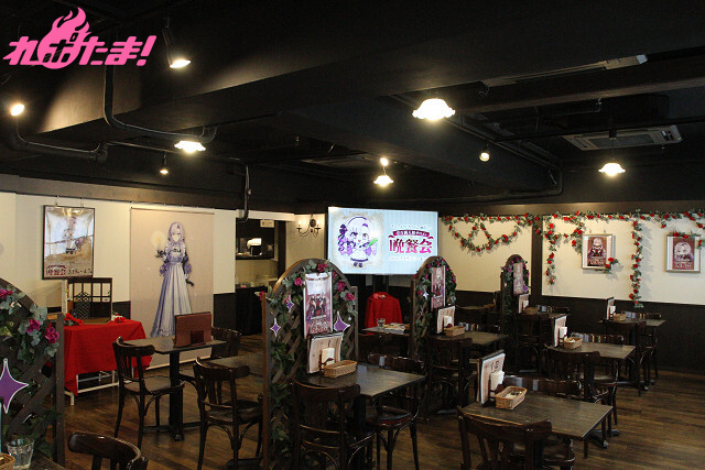 ▲店内の様子。高級感ただよう装飾に、サロメさんのイラストやタペストリーが展示! フォトスポットも!
