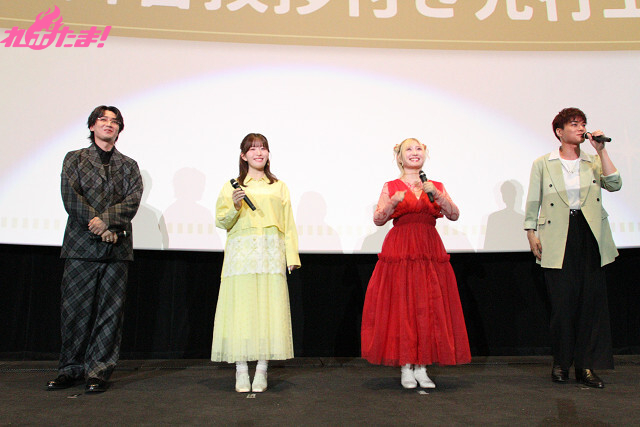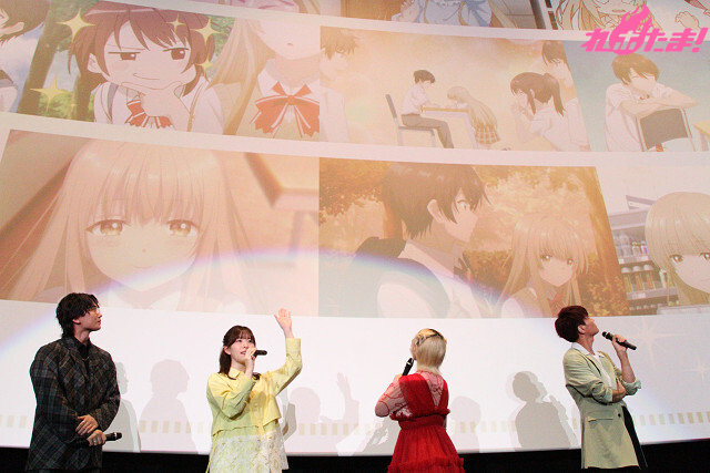 上映後、メインキャストの坂 泰斗(藤宮 周役)、石見舞菜香(椎名真昼役)、白石晴香(白河千歳役)、八代 拓(赤澤 樹役)の4人が登壇した舞台挨拶が行なわれた。