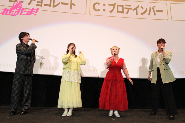 続いては「目指せ天使様への道 in 先行上映会」コーナー。『お隣の天使様』に関する超難問に4人で協力してチャレンジ! 全問正解するとご褒美として「とっておきの最新情報」が公開される、という内容だ。