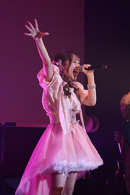 その後、TVアニメ「ヒーラー・ガール」(矢薙ソニア役)で礒部花凜、熊田茜音、堀内まり菜と「ヒーラーガールズ」として歌っていた「Believe like Singing」を一人でしっとりと歌い上げた。