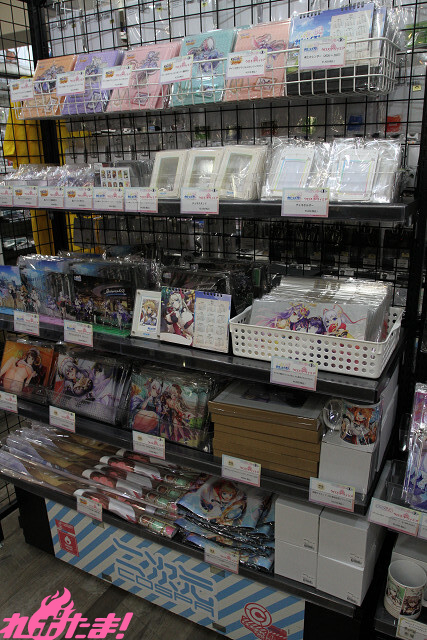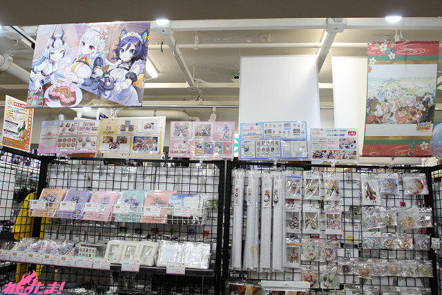 ▲店の外には各作品の新作グッズがズラリ。一定金額以上のお買い物で「クリアファイル」をプレゼント!