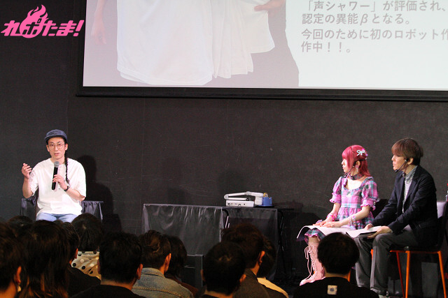 「投げキッスがどのくらい飛ぶかの公式」を導き出したり、ライブやイベントでファンに向けて投げキッスパフォーマンスを行う峯田さんへ向けて「投げキッスの投げ方講座」を行ったりと、フリーダムなステージを展開し、場内を笑いで包み込んでいた。