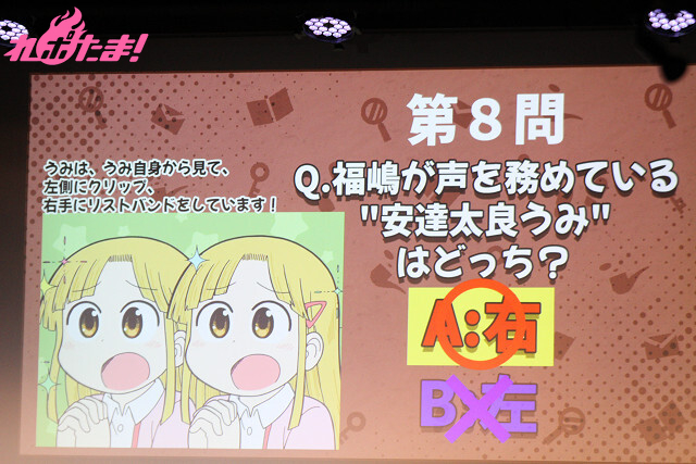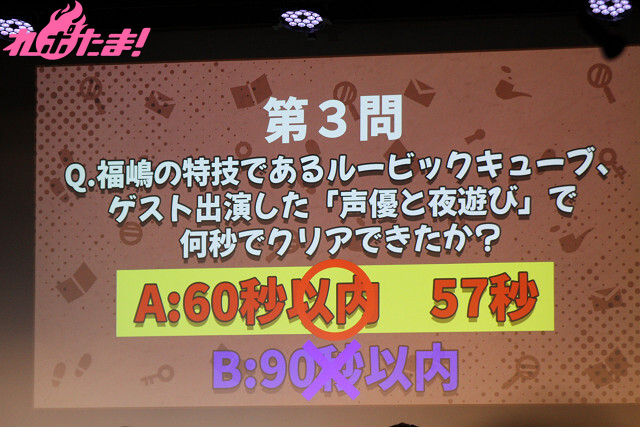 「公式プロフィールに書かれた“好物”は?」、「『CITY THE ANIMATION』でキャストを務めた『安達太良うみ』はどっち?」などの問題が出題され、「私のことを知っていたら簡単だよね!」と福嶋さんからプレッシャーを感じつつも(?)、しっかりと正解を重ねていき、こちらのコーナーでもコインの獲得に成功した。
