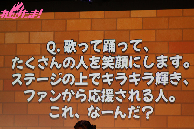 ステージ後方のスクリーンに映し出されたお題(福嶋さんには見えない)を真野さんと客席がジェスチャー。そのお題を福嶋さんが3つ当てることができればクリアとなる。真野さんのジェスチャーに惑わされつつも(笑)、見事クリアし、コインをゲット!