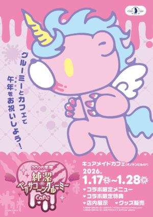 ☆今回はオノデンビル4F ジーストア・アキバ内の「キュアメイドカフェ(CURE MAID CAFÉ)」より、《2026午年 純潔のペガサコーンGLOOMY Cafe》開催のお報せです! 店内もグルーミーでいっぱいに! […]